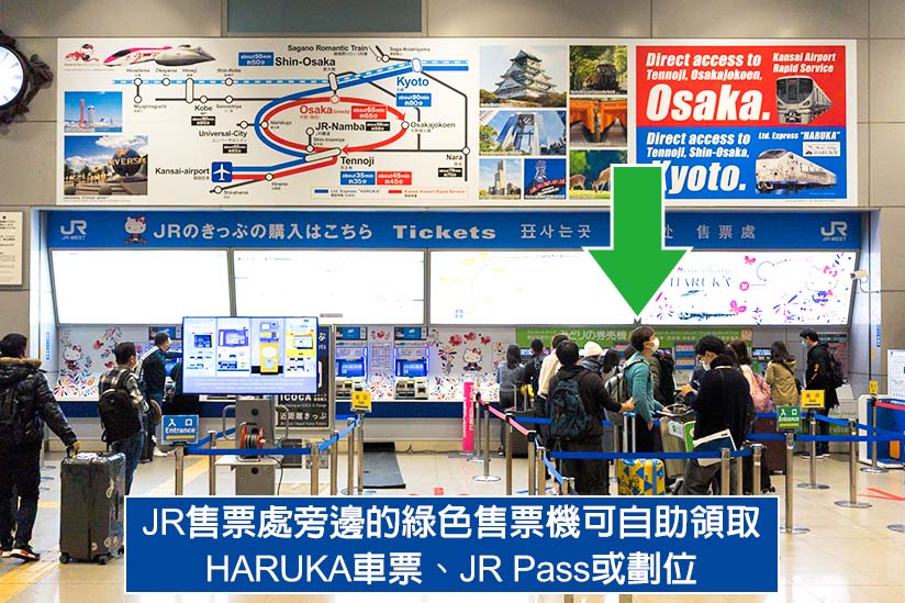 購買實體車票的旅客,請持 KKday 等售票機構發行的電子憑證(E-Ticket/eMCO)到 JR 售票處旁邊的「綠色售票機」(新幹線‧特急‧定期券售票機)自助領取 HARUKA 特價單程車票或 JR Pass,並在取票時一併劃位。