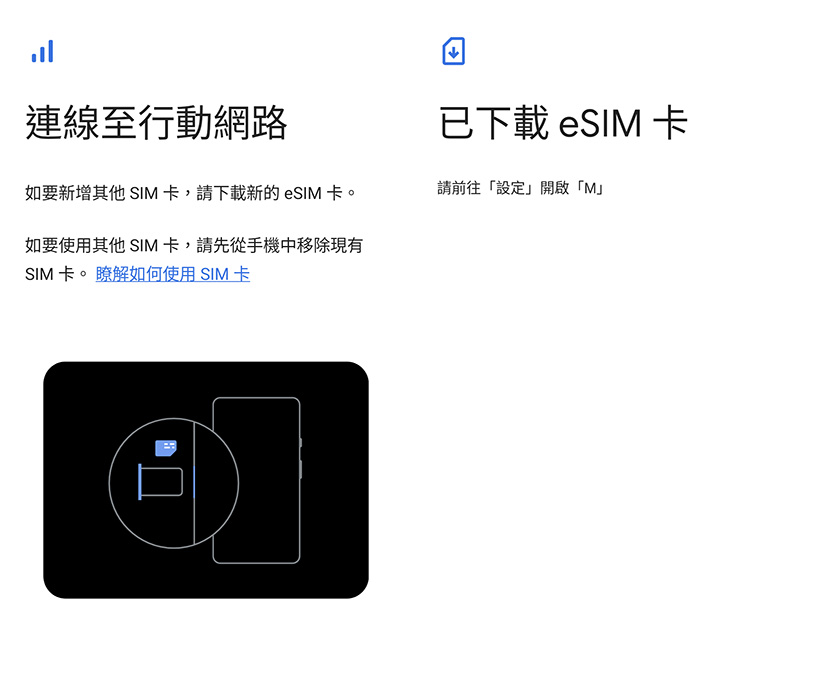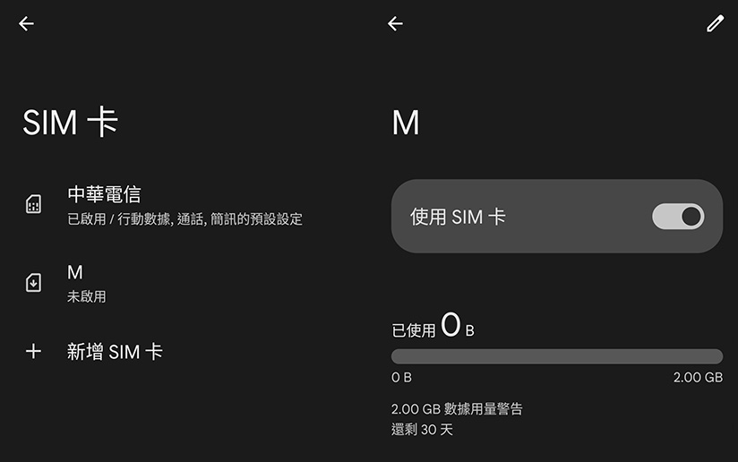 完成後,請打開手機的系統設定>網路與網際網路>SIM 卡,先停用台灣的 SIM 卡,再啟用日本的 SIM 卡或 eSIM。